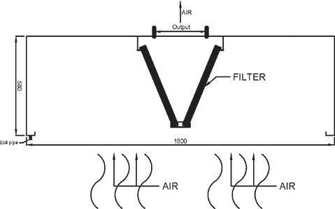 - Kod pravougaonih ostrvskih EKO hauba, bez rotirajućeg usmerivača, mlaz dovodnog vazduha je pod uglom od 90°, odnosno vertikalno naniže, ili pod uglom od 45° na Vaš zahtev.