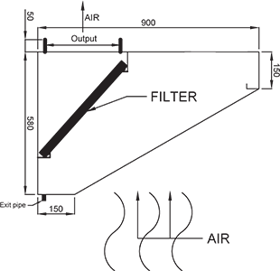 - Kod zidnih EKO hauba tipa "Snack", bez rotirajućeg usmerivača, mlaz dovodnog vazduha je pod uglom od 90°, odnosno vertikalno naniže, ili pod uglom od 45° na Vaš zahtev.